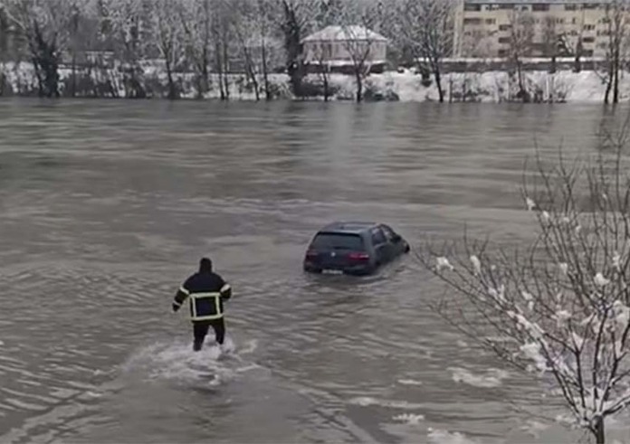 Sve se odigralo nakon što je Volkswagen Golf, zbog naglog porasta vodostaja, završio zaglavljen u riječnom koritu. Na teren su brzo izašle vatrogasne i policijske ekipe, očekujući zahtjevnu intervenciju izvlačenja vozila, no situacija je dobila neočekivan preokret.
