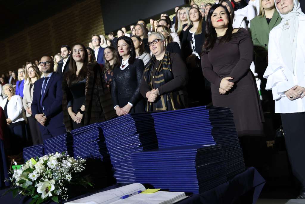Svečana promocija i dodjela diploma za 3.547 diplomanata i magistranata Univerziteta u Sarajevu održana je danas u dvorani "Zetra" u Sarajevu, gdje je diplomantima i magistrantima poručeno da budu ponosni na stečeno znanje, ali i da budu svjesni odgovornosti koja ga prati te da aktivno učestvuju u oblikovanju budućnosti Bosne i Hercegovine.