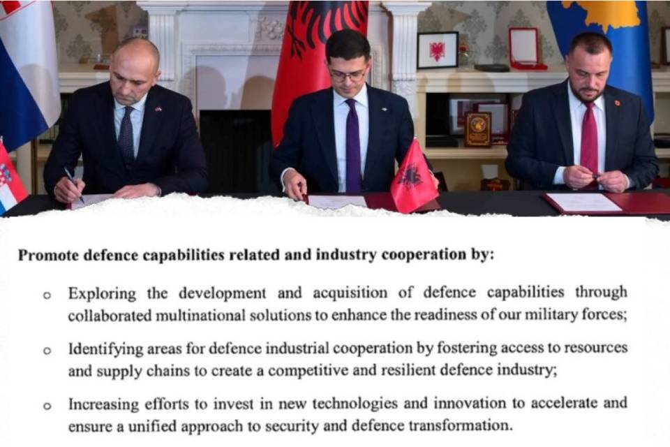 "Riječ je o Deklaraciji o suradnji na području obrane i sigurnosti između Hrvatske i Albanije, kao saveznica u NATO-u, i Kosova. Deklaracija o suradnji triju zemalja usmjerena je na stabilnost i sigurnost u jugoistočnoj Europi, podršku euroatlantskom putu te jačanje suradnje i savezništva triju prijateljskih država", stoji u priopćenju MORH-a.